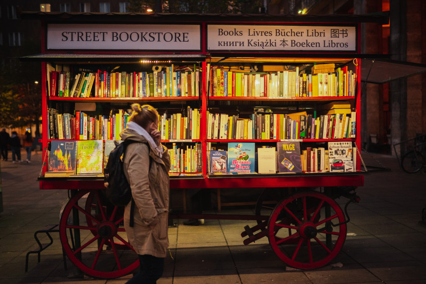 Our book-cart on Madách Square is partly international! You can find literature, dictionaries, coursebooks, albums, and all kind of books on specialised topics in English, French, German and many other languages. We are 5 minutes away from Deak Square; come and look around! All our books cost 450 or 900 Hungarian Forints.